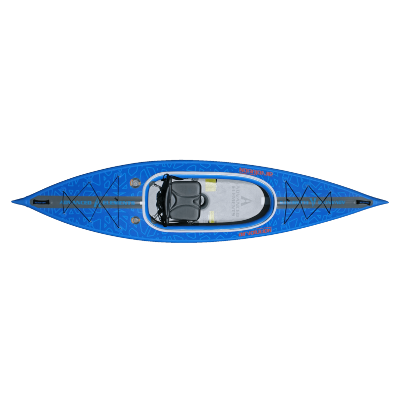 A rigid, high-pressure drop-stitch kayak unlike any other, the AirVolution is a streamlined, high-performance kayak with paddling performance that rivals that of a hardshell kayak. Featuring an open deck design for ease of entry, the AirVolution uses extremely durable materials, and features many high-end components, such as a high-back, comfortable seat, bungee deck lacing for gear stowage, and heavy-duty grab handles. Simply unfold, inflate, and you're ready for your next adventure!