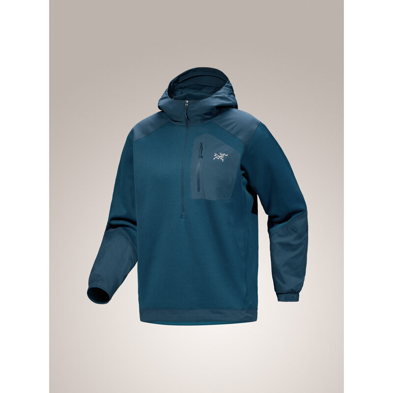Conquer vertical challenges in the Arc'teryx Konseal Pullover Hoody, your new climbing companion that moves as boldly as you do. Engineered with Polartec® Power Stretch® fleece and Hardface® Technology, this technical mid-layer delivers exceptional warmth without compromising mobility during those crucial reaches and dynamic moves. Strategic stretch nylon reinforcements at the shoulders, lower arms, and waist ensure durability where climbers need it most, while the helmet-compatible hood with its single-point adjuster keeps you protected when the weather turns without limiting visibility on challenging routes.