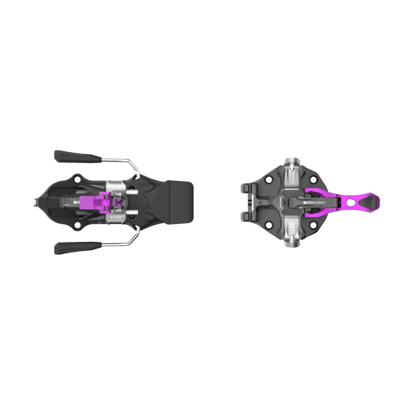 The ATK Raider 11 EVO represents the pinnacle of ski touring binding innovation, delivering uncompromising downhill performance in a featherweight 370g package that won't hold you back on long backcountry adventures. This Italian-engineered marvel packs eight patented systems into its aerospace-grade aluminum frame, including the groundbreaking Release Adjustment® toe piece that lets you dial in release values from 3-11 for the first time in pin binding history. The revolutionary EVO Brake System® transforms transitions with single-hand operation, rotating 180 degrees to seamlessly switch between touring and skiing modes, while the Aluminum Snowpack Proof System® keeps ice and debris from jamming your bindings when conditions get gnarly. Whether you're skinning up steep couloirs or charging powder bowls, the Raider 11 EVO's Cam Release System® ensures rock-solid step-in reliability and precise power transfer, making it the ultimate choice for advanced backcountry skiers who refuse to compromise on either uphill efficiency or downhill performance.