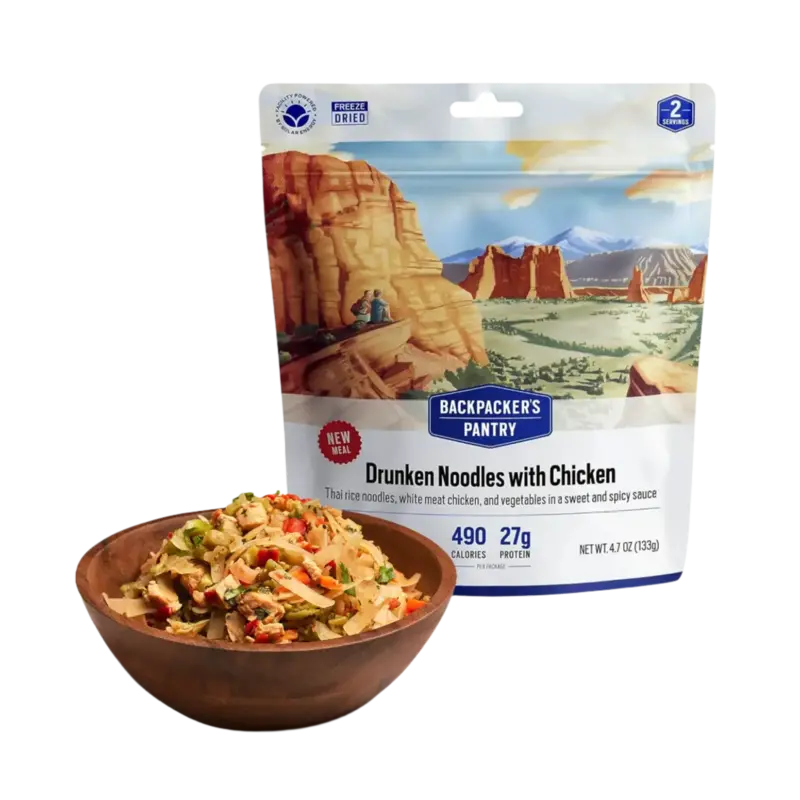 Backpacker’s Pantry knows you love their Thai-inspired meals, so why not add another to the mix? This dish features traditional wide rice noodles sourced straight from Thailand, tossed with chicken, broccoli, red bell pepper, and carrot. Backpacker’s Pantry’s authentic sweet and spicy tamari and brown sugar sauce will transport your taste buds straight to the streets of Thailand. Note flavors of lemongrass, lime, and cilantro as well.