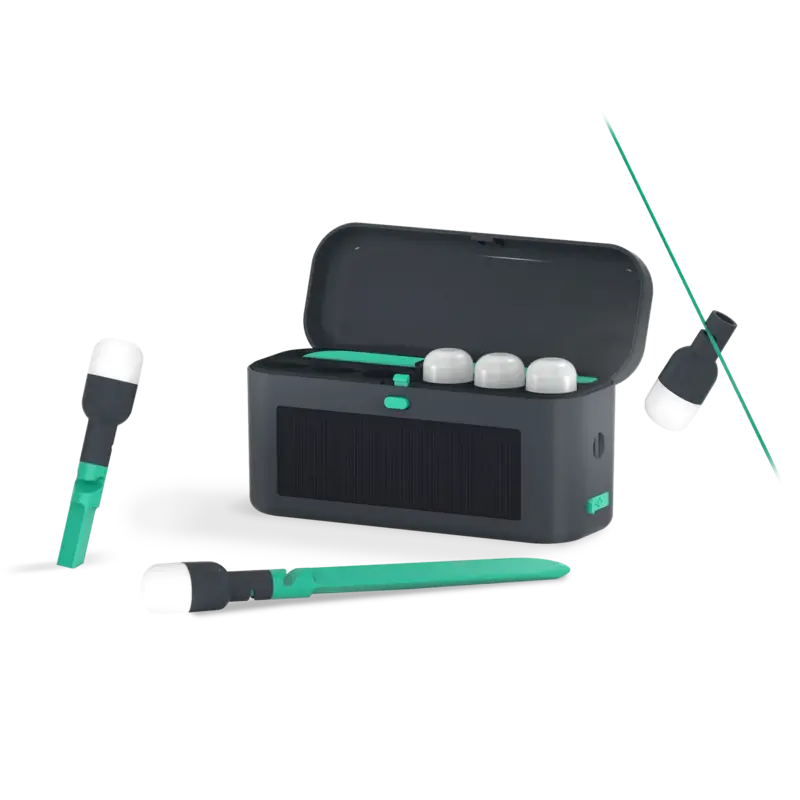 - Dual-input charging case with stake storage, for versatile magnetic charging options - USB-C or solar