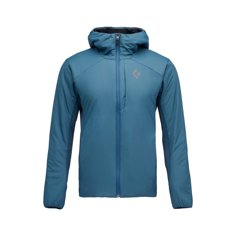 Whether you're starting an alpine route in the pre-dawn darkness or descending by headlamp after a long day on the mountain, the Black Diamond First Light 1.0 Stretch Hoody delivers precisely targeted warmth where you need it most. This intelligent midlayer uses strategic PrimaLoft Gold Active insulation mapping in your core heat zones while incorporating breathable merino wool backing to prevent overheating during high-output climbs. The helmet-compatible hood seamlessly accommodates your climbing or ski helmet, while the packable design compresses into its own chest pocket so you can easily stash it when the sun comes up and temps rise. Built with a lightweight 20D stretch nylon ripstop shell and PFAS-free DWR coating, this versatile hoody moves with you through technical terrain while shrugging off moisture, making it the ideal companion for serious mountaineers and alpine climbers who demand performance that keeps pace with their ambitions.