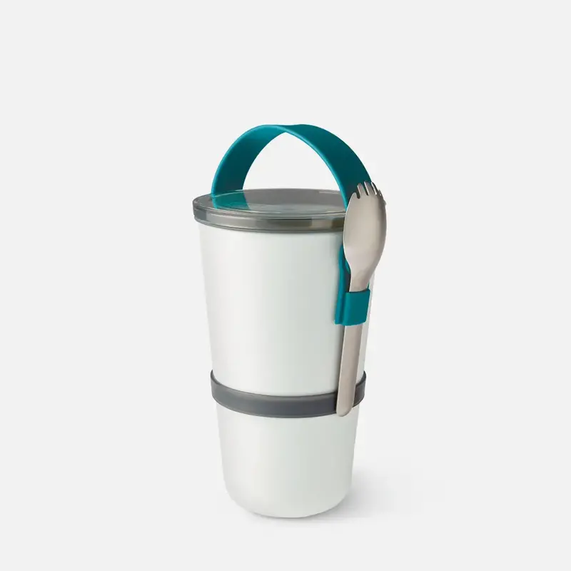 Two separate pots that make it easy to carry your breakfast or lunch on-the-go.