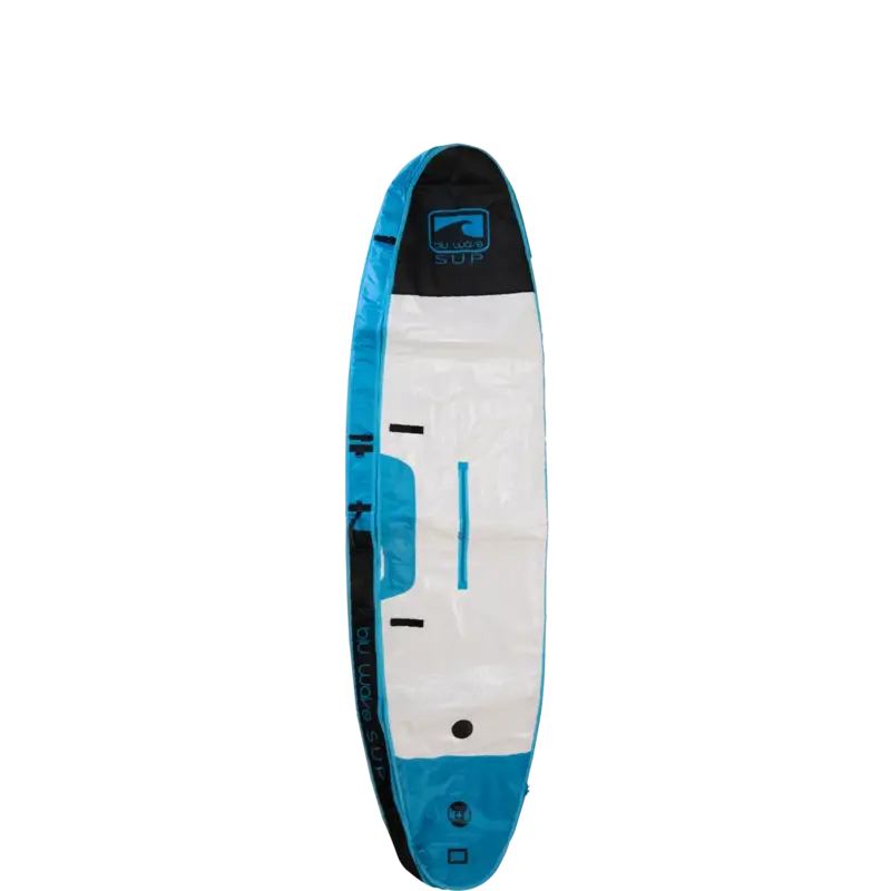 NEW DESIGN for 2021! Our new and improved premium board bag has been redesigned for 2021, incorporating a variety of material and feature upgrades. Now constructed with a combination of high quality hex pattern 1680D polyester and heavy duty tarpaulin, with 7mm of foam padding, non-corrosive YKK zippers, fin slots and heavy duty buckles. The full zip coffin style allows you to fully open the bag and place your board inside for easy packing and unpacking, and synch straps on the sidewalls ensure a perfect fit. Heavy duty handles at the nose, tail, and rails provide multiple options for solo or tandem carrying, as does our unique zip opening at the centre of the bag to access the board's handle. Additional upgrades include air vents, padded shoulder strap, address card slot and our integrated paddle holder.