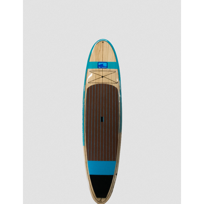 The Blu Wave original, re-designed for their 10th anniversary season with new paulownia wood veneer deck and bottom. Built tough with our Timber-tech compression molded construction, the Woody 10.6 and 12.0 provide maximum strength to weight ratio and superior performance in a durable light-weight board. Fitted with multiple tie downs for deck stowage and a built in GoPro attachment, the Woody is the perfect answer for someone looking for a board that will do it all….in style! Blu Wave's longboard inspired shape provides excellent glide on flat water and drive off waves, while our generous width at 31/32”, provides ample stability. In a move towards more sustainable construction methods we are using paulownia wood in the construction. Paulownia is one of the worlds fastest growing timbers, and has ideal strength to weight properties.