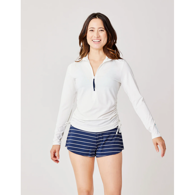The Cruz rashguard offers lightweight and versatile sun protection with long sleeves for maximum cover up. Quick dry fabric is great for water sports or hiking. Zip neck and shirred sides allow for flattering fitted shape and cooling options.