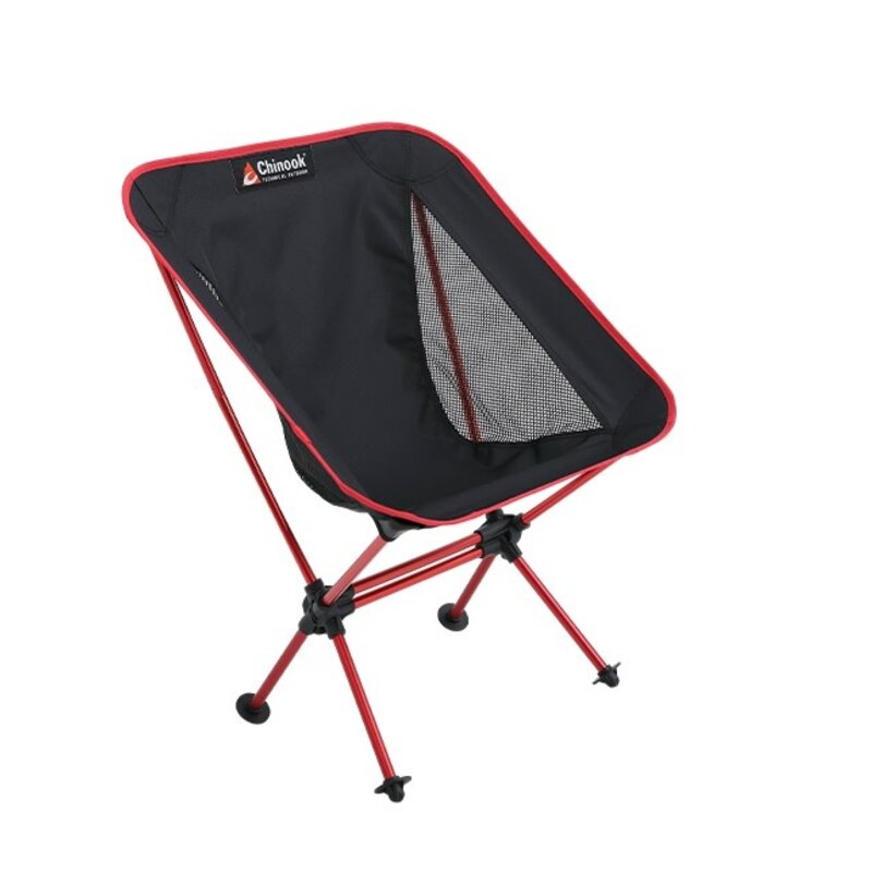 Aluminum 7075 lightweight folding camp or backpacking chair. Sets up quickly and easily. Single shock corded pole structure. Breathable mesh on sides.
