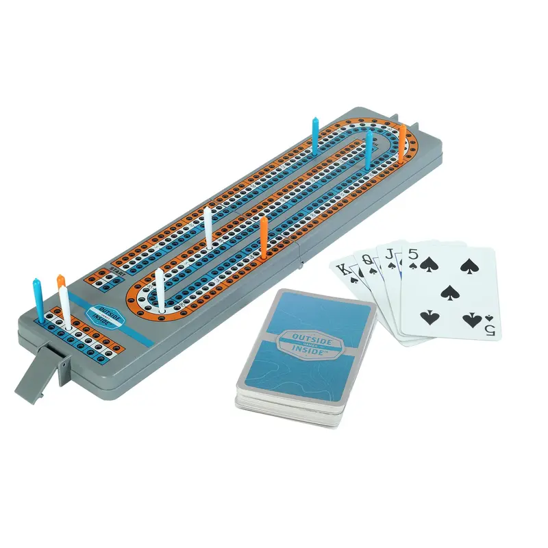 Turn any outdoor adventure into game night with GSI's Backpack Cribbage, the portable gaming solution that brings this classic card game to your campsite, RV, or backcountry retreat. This ingenious folding cribbage board maintains the authentic full-size 3-track gameplay you love while packing down to half its size with a secure locking mechanism that keeps everything contained during transport. Built from durable ABS plastic that laughs off weather and rough handling, it includes integrated storage that keeps your cards and pegs safely tucked inside the board itself - because nothing ruins a good game like losing pieces in the dirt around your campfire. At just 7.4oz and complete with a travel bag, this outdoor-tough cribbage set proves that great entertainment doesn't have to stay home when you head into the wilderness.