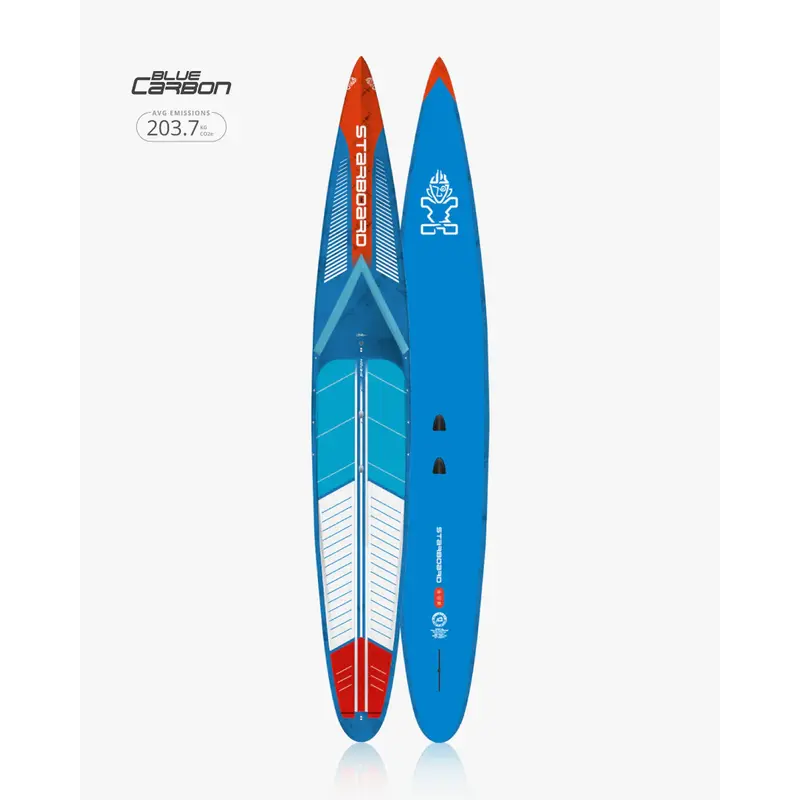 The Starboard 14' All Star Blue Carbon represents the world's most winning racing SUP, engineered with championship-proven technology that's claimed 14 Gold titles across three ICF World Championships. This lightweight carbon sandwich board features advanced Blue Carbon construction with biaxial carbon fiber strategically placed over the standing area and full bottom for optimal strength-to-weight performance at just 12.92kg. The refined vee design underneath delivers exceptional stability while soft rounded rails provide complete control in all conditions, from flatwater sprints to choppy ocean racing. Enhanced with a recessed standing area, open cockpit design, and improved scupper drainage system, this versatile racing machine accommodates everyone from entry-level competitors to elite racers up to 95kg, making it the ultimate choice for paddlers seeking proven race-winning performance with uncompromising stability and control.