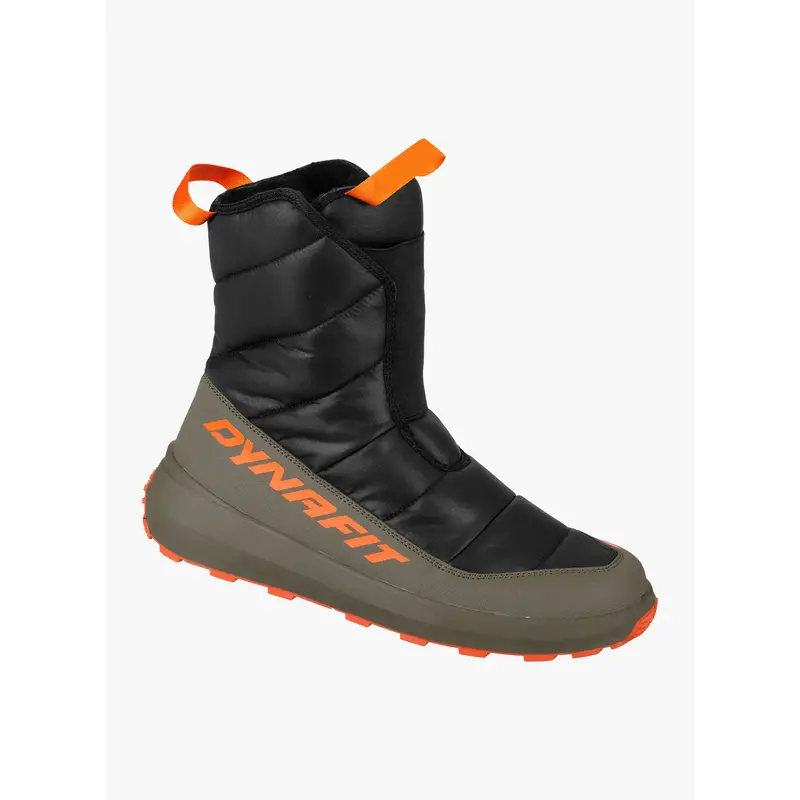 Cozy warm feet before and after a ski tour: The DYNAFIT Unisex Winter Booties are the ultimate feel-good shoe for getting to and from the mountains. Whether in a car, on a bus to a race, or getting from a hotel room to the ski storage area, these Winter Booties give your feet the comfort and protection they desire. On the way to the mountain, the water repellent Booties keep your feet warm and dry. As soon as you are done and climb out of your ski boots, the Winter Booties are at the ready. Let the feel-good program for your feet begin. The insulated upper construction, a soft lining, and an extra thick padded footbed lend comfort, and you are walking on cozy clouds. Two straps affixed permanently to the bootie enable getting into them easily without any fuss. The Winter Bootie also features a good tread pattern to ensure you are stable on slippery surfaces. DYNAFIT Winter Bootie – Àpres-ski (tour) for your feet.