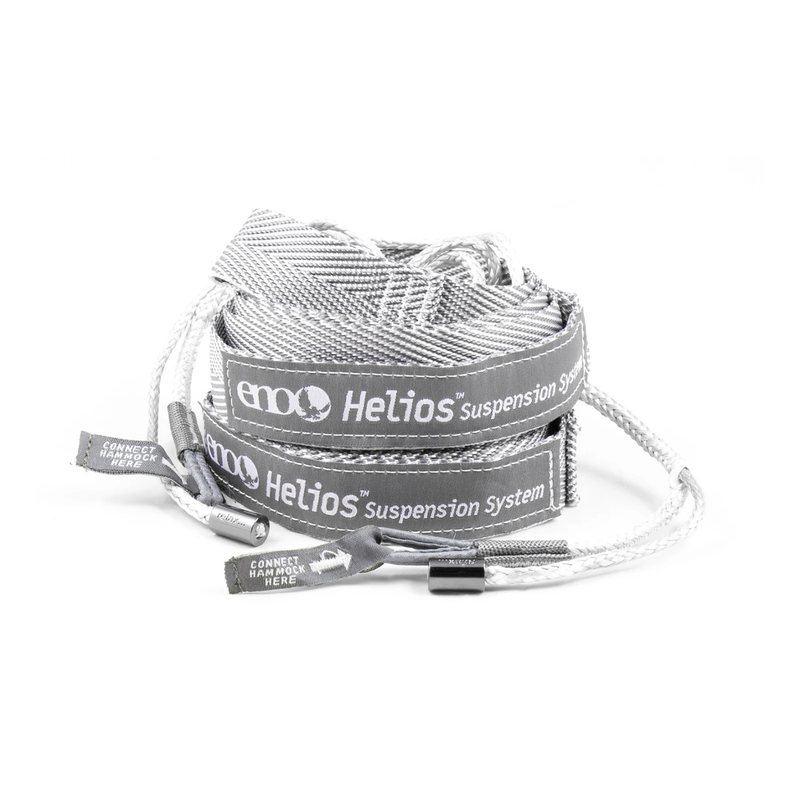 Helios, Titan god of the sun, was light, strong and powerful - just like our Helios Suspension System. Crafted from super-strong Silverlite™ line with a polyester blend tree sling, the Helios sets up in a flash and provides superior adjustment with a bury splice. Measuring just over 8 feet and able to accommodate even the most awkward of spacing, this techy, tree-friendly strap breaks legendary boundaries for hammockers.