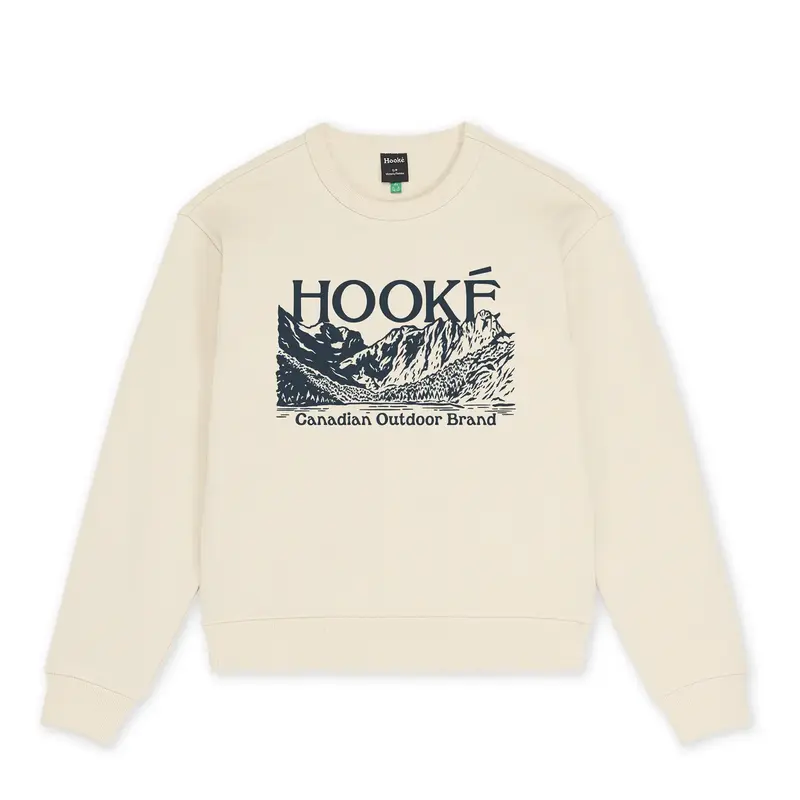 Whether you're chasing sunrise viewpoints on weekend adventures or savoring slow mornings at home, this women's crewneck brings mountain-inspired comfort to every moment. The Hooke Elk River Mountains Crewneck features custom embroidered artwork by Dan Sheridan that captures the rugged beauty of the Elk River peaks, making it a wearable piece of mountain art. Crafted from a sustainable blend of organic cotton and recycled polyester in a relaxed drop-shoulder fit, this oatmeal fleece crewneck feels substantial yet breathable, layering effortlessly over a tee for cool evenings or under a shell when mountain weather turns. From road trips to downtown coffee runs, it's designed for the woman who carries her love of the outdoors wherever she goes.