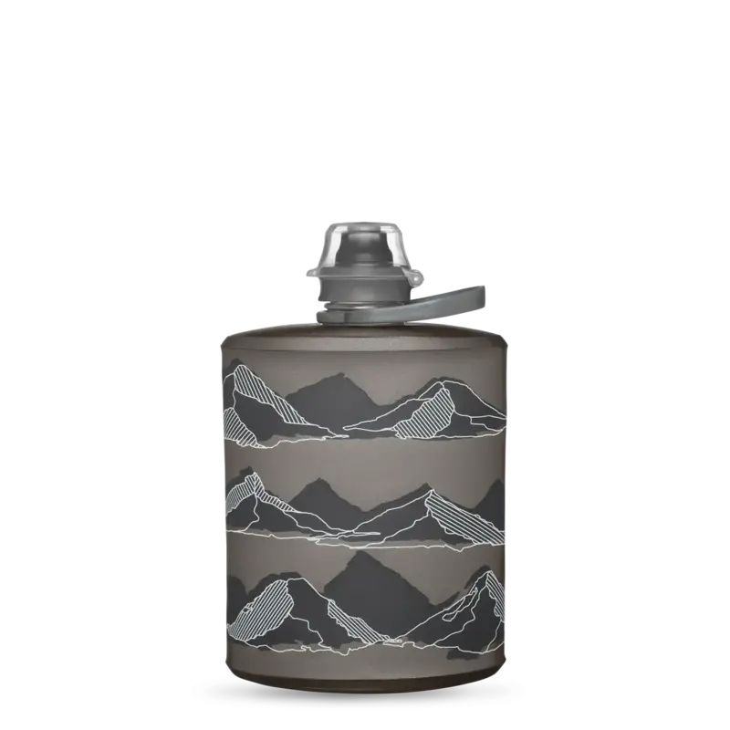 Featuring a bold new mountain-inspired graphic, Hydrapak's best-selling Stow 500 mL is designed for all of your adventures. With a weight 80% lighter than most hard bottles, it’s the perfect pocket-able bottle. The flip-top cap with spill-proof valve for easy drinking, bail handle for comfortable carrying and attachment, and minimal design help make hydration on-the-go effortlessly easy.