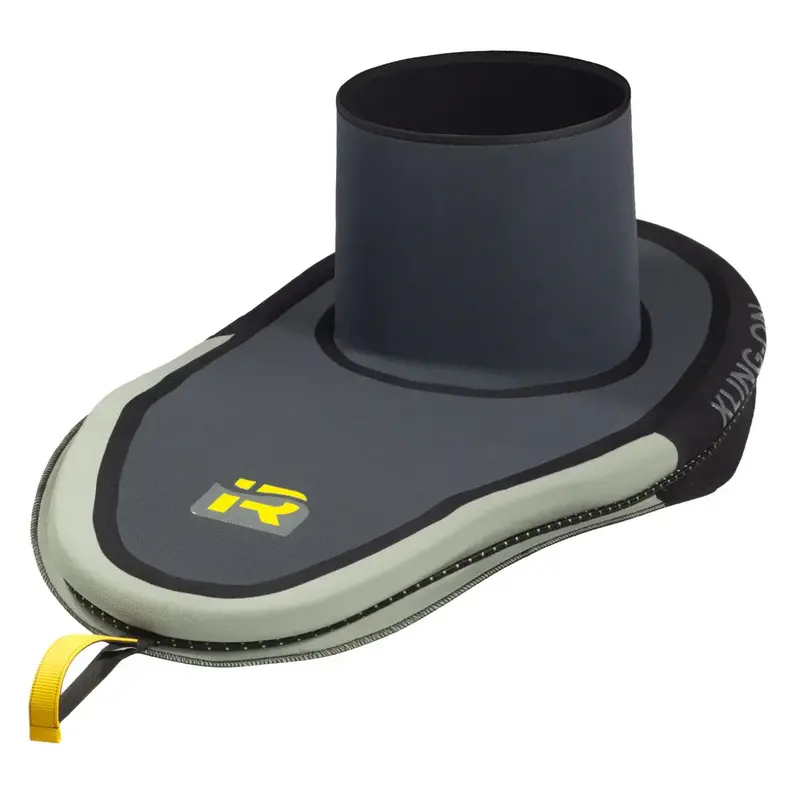 The Klingon Bungee Sprayskirt is designed to provide the driest possible fit for intermediate-expert paddlers. A 3mm neoprene tunnel is mated to an abrasion-resistant 4mm Supratex II deck while the Schoeller™ Dynamic® reinforced front casing provides extra protection around the cockpit rim. A high tension bungee wrapped in a neoprene apron that extends past the shock cord makes the Klingon our driest skirt. Super sticky silicone grip strips on the underside of the casing keep the skirt securely in place in heavy whitewater. Our grippy, corrugated, high-vis Eagle Talon grab handle holds its shape and prevents your hand from slipping off the end making it easy to find and pull in disorienting situations.