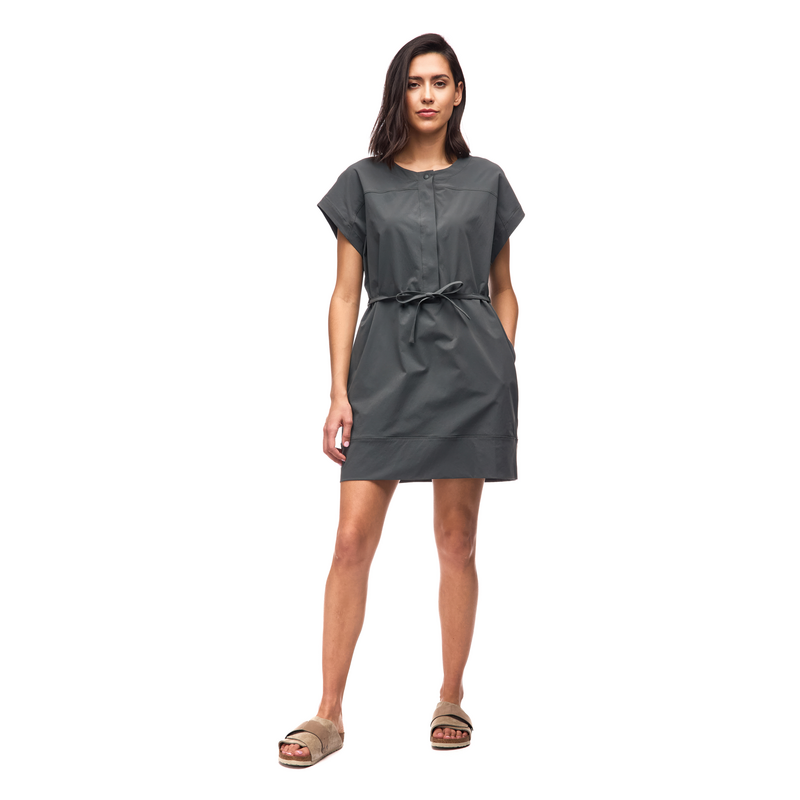 The Indyeva Kemeja II Dress transforms your outdoor wardrobe with effortless versatility that takes you from woodland trails to weekend adventures. This technical shirt dress features a performance nylon-spandex blend that breathes with you while providing excellent stretch and UPF 50+ sun protection for those long days under the open sky. The removable belt lets you customize your look and comfort level - cinch it for a defined silhouette around town or go belt-free for unrestricted movement on the trail. With its snap-front closure and functional side pockets, this hiking dress delivers the perfect balance of technical performance and everyday wearability, whether you're exploring forest paths, traveling to new destinations, or layering it as a tunic over leggings for extended outdoor activities.