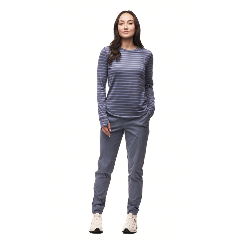 The Indyeva Novara II Long Sleeve Top is your go-to companion for everything from casual coffee runs to challenging day hikes. This women's crew neck top strikes the perfect balance between everyday comfort and outdoor performance, featuring a four-way stretch fabric blend that moves with you whether you're navigating rocky trails or stretching for the top shelf. The moisture-wicking and fast-drying technologies keep you comfortable when the trail gets steep, while the classic fit with gentle draping provides a flattering silhouette that works just as well in the city as it does in the wilderness. With thoughtful details like thumbhole cuffs for added hand coverage and a curved hem that won't ride up during activity, this versatile long sleeve top proves that you don't have to sacrifice style for performance.