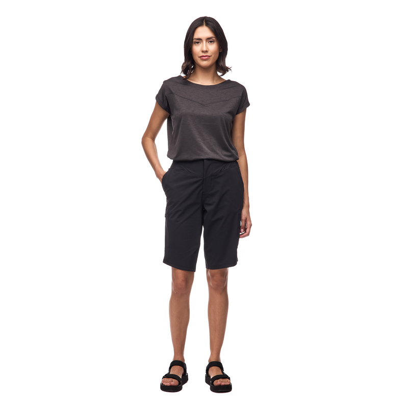 The Indyeva Viajar III Bermuda Shorts are your go-to companion for everything from casual woodland strolls to demanding day hikes, delivering the perfect balance of comfort and performance that active women crave. Built with a technical 94% nylon blend featuring 2-way stretch, these hiking shorts move with you through every stride while the moisture-wicking fabric keeps you dry and comfortable when the trail heats up. The enhanced pocket system includes new side pockets alongside secure zippered back pockets, giving you easy access to trail essentials without the bulk, while the improved 4-directional stretch waistband ensures all-day comfort whether you're scrambling over rocks or settling in for a summit lunch. With UPF 50+ sun protection blocking over 98% of harmful rays and quick-dry technology that bounces back from sudden weather changes, these versatile outdoor shorts transition seamlessly from challenging long hikes to travel days and casual adventures, proving that technical performance doesn't mean sacrificing style.