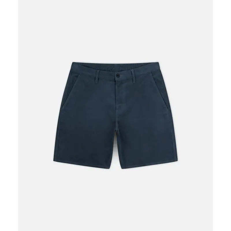 A pair of corduroy men’s shorts, with a half-elastic waistband and soft, yarn-dyed fabric