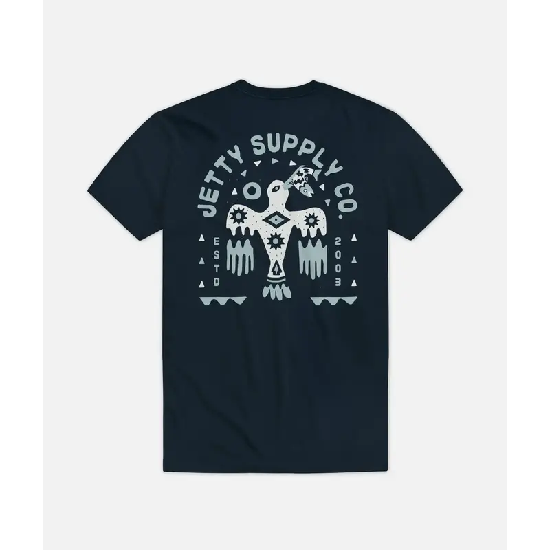 A super soft, men’s cotton T-shirt whose dyeing process is bluesign-certified, and that bears Jetty’s Seabird graphic (printed with water-based discharge ink!)