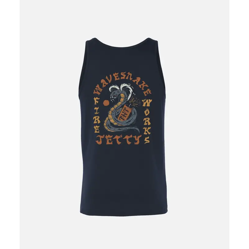 A cotton men’s tank top with an explosive snake graphic