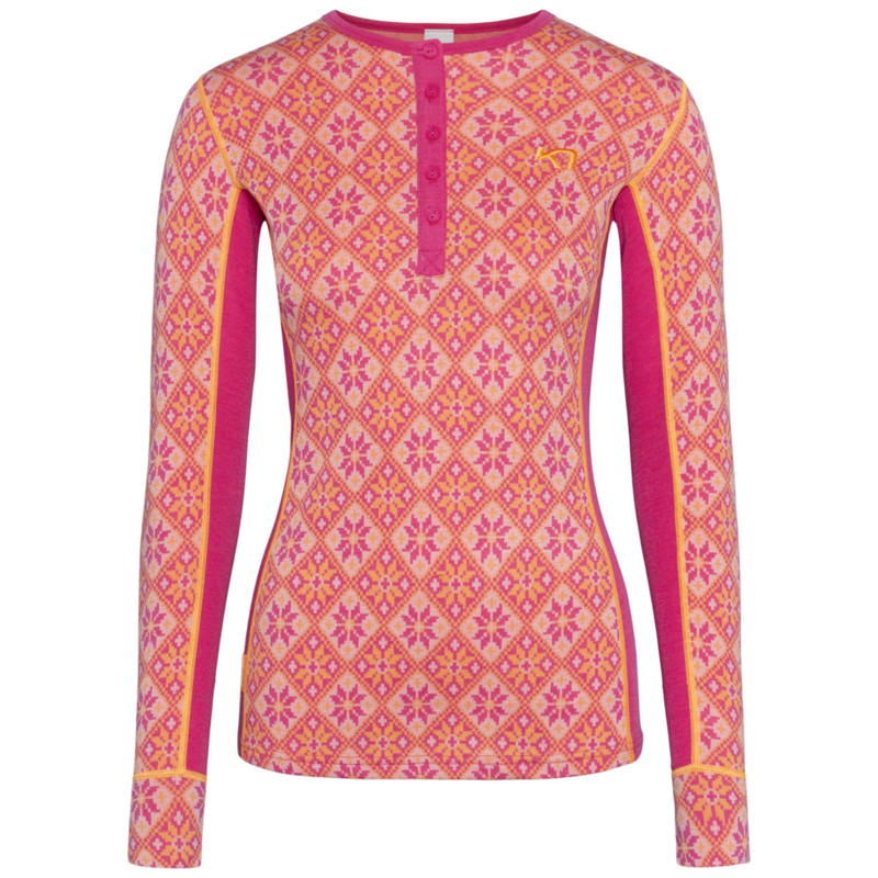 - Slim fit, Round neck, Wool fibers for supreme isolation, wet or dry, Stretch fabric mapping for improved fit and movement, Soft handfeel, Comfortable, Next-to-skin comfort, Warming, Jacquard knit, Flattering lines, Flatlock seams for smooth finish, Front closure with buttons, Cuff sleeve ending, Embroidered logo, Contrast details, Wardrobe favorite, IWTO-certified, traceable, non-mulesing Merino wool, 240g