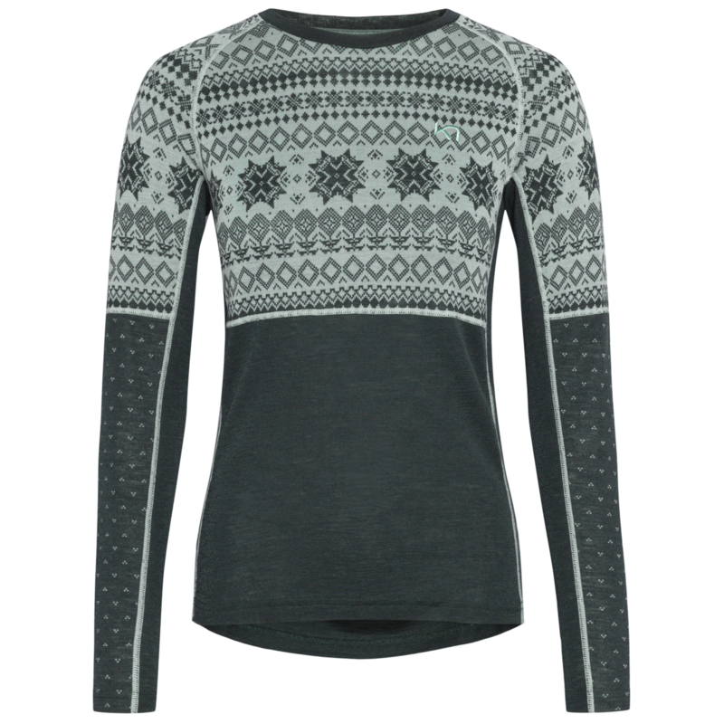 Smooth and soft, the Vilma’s Jacquard knit pattern evokes snowfall, while stretchy underarm panels allow unrestricted movement. With a flattering round neck, slim fit, and raglan sleeves, the Vilma is a warm baselayer for cold winter days.