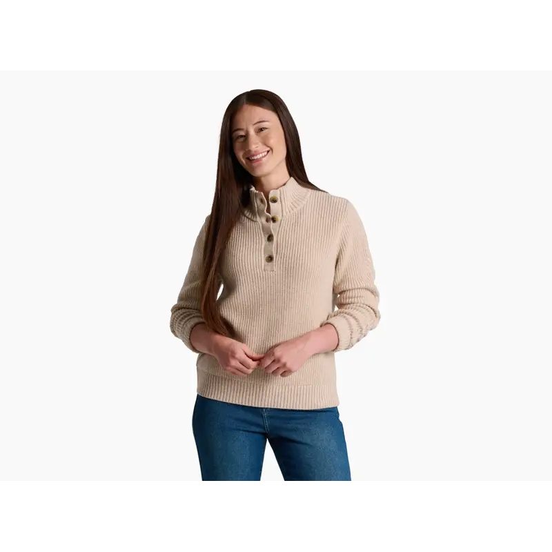 Whether you're curled up by the fire with a good book or heading out for an evening stroll through crisp autumn air, the Kuhl Fireside Henley Sweater delivers that perfect blend of comfort and sophistication you've been searching for. This women's henley sweater features a thoughtfully engineered three-fiber blend that combines the natural warmth of merino wool with the durability of nylon and the easy-care properties of acrylic, creating a sweater that feels as good as it looks after countless wears and washes. The high ribbed collar wraps your neck in cozy warmth while the classic henley styling with button details lets you adjust your coverage as temperatures change throughout the day. With its refined knit detailing and substantial 403 GSM weight, this versatile layering piece transitions effortlessly from fireside relaxation to weekend adventures, proving that technical performance and timeless style can live in perfect harmony.
