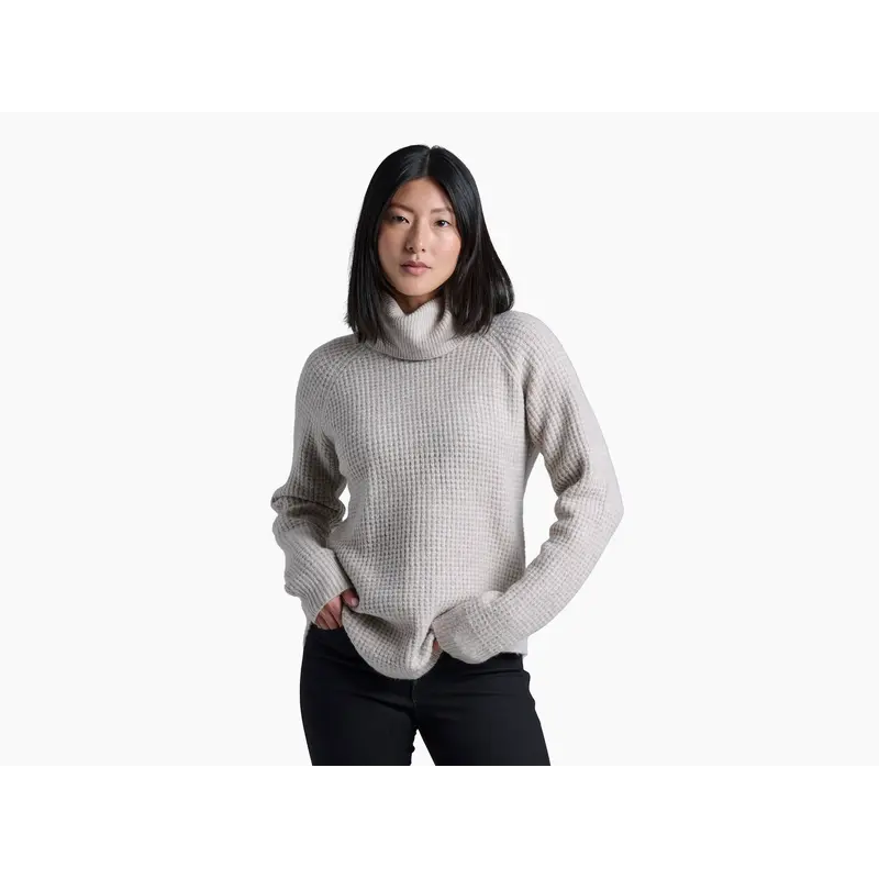 The Kuhl Sienna Sweater delivers the perfect balance of cozy comfort and effortless style for women who refuse to choose between looking good and feeling great. This heavyweight knit sweater features a luxuriously soft construction that wraps you in warmth without the bulk, while the signature ribbed cowl neck creates a cocoon of comfort around your neck and shoulders. The roomy fit makes it an ideal layering piece for transitional weather, letting you add base layers underneath or throw it over your favorite tee when the temperature drops. Whether you're heading to the coffee shop in leggings or dressing it up with a skirt for dinner out, the curved hemline and relaxed silhouette create a flattering look that works from sunrise hikes to sunset gatherings.