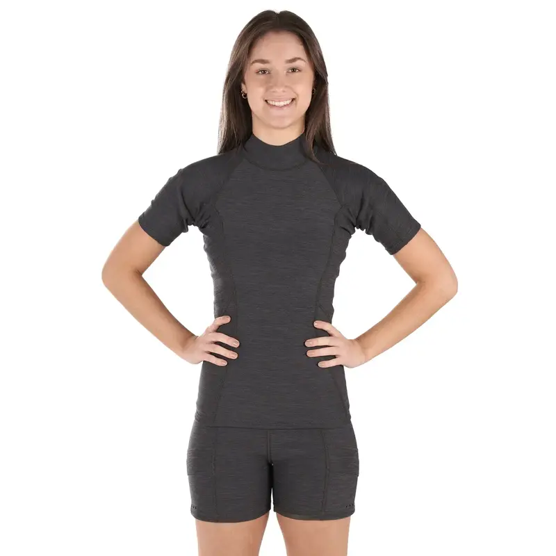 A short-sleeve neoprene women's rashguard, with flatlock seams, an athletic fit, and a UPF 50+ rating, to help you blow down the walls of paddling comfort and protection