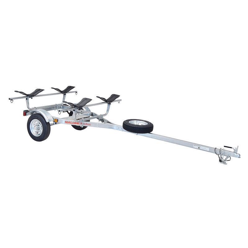 Easily transport two recreational or sea kayaks with the MPG461GS package! This comprehensive set includes the MicroSport Base Trailer paired with V-style carriers, specifically crafted for efficient kayak transportation in a bottom-down position, reducing wind resistance and improving gas mileage. The package comes complete with two sets of MPG207 MegaWing kayak carriers, and a spare tire featuring a secure lockable attachment. It's the ideal solution for everyday kayakers seeking a hassle-free way to transport two kayaks without the time-consuming task of loading and unloading from the car roof.