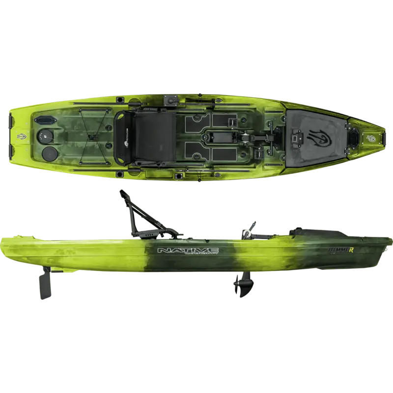 The Native Watercraft Hammer Propel 1210 transforms serious anglers into tactical fishing machines with its revolutionary dual-propulsion design that seamlessly switches between pedal power and motor drive. This 12'10" fishing kayak delivers the ultimate command center experience, featuring an ultra-wide 36" beam for rock-solid stability whether you're standing to cast or sitting to work structure, plus a massive 650 lb capacity that handles all your tournament gear without breaking a sweat. The patent-pending Propel X-Range Pedal Drive gives you hands-free precision when picking apart cover, while the motor-ready stern lets you cover water fast to reach prime fishing spots before the competition. With purpose-built storage throughout the open deck design and smart rigging options that adapt to any fishing scenario, the Hammer Propel turns every outing into a tactical advantage where clean transitions between propulsion methods give you the edge to outfish and outmaneuver the field.