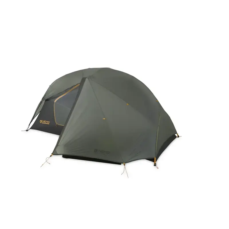 The tent itself features a tapered floor plan to save weight without sacrificing livable space, and a tub floor design to increase privacy and weather protection. Each asymmetrical vestibule keeps gear tucked out of the way, and NEMO’s Landing Zone™ waterproof storage tub offers a protected, mud-free dumping ground. Thoughtful new details include an overhead, diffusing Nightlight Pocket™ and integrated Gatekeeper™ clips, while an internal daisy chain, gear loft, and gear pockets offer plenty of storage and org.