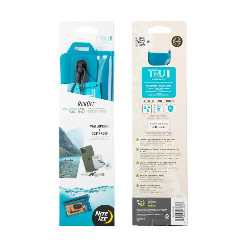 - TRU® ZIP Technology | The unique patented TRU Zip waterproof zipper developed by Nite Ize sets RunOff bags apart from anything else on the market. The simple, slide-to-secure zipper is easy-to-use, and features a waterproof and dustproof seal that's snag-proof and creates a confident closure you can feel. Its toothless design is silent, glides smoothly, and offers maximum reliability, whether it's left out in the rain or fully submerged | Correct Use - To close the TRU Zip zipper, move slider slowly and pull firmly to lock into zipper end-stop. If slider is not fully closed, zipper will not seal as intended. Test the RunOff bag for its waterproof capability by periodically submerging it after sealing the TRU Zip zipper. Do not use if bubbles escape the bag during testing | Important - The performance of the product depends in part on correct use and maintenance of the TRU Zip zipper as provided above. Protect the RunOff bag from sharp objects and abrasions during use and always inspect the bag for wear and tear before use. Nite Ize, Inc. is not responsible for any damage caused to any equipment or property from the use of this product