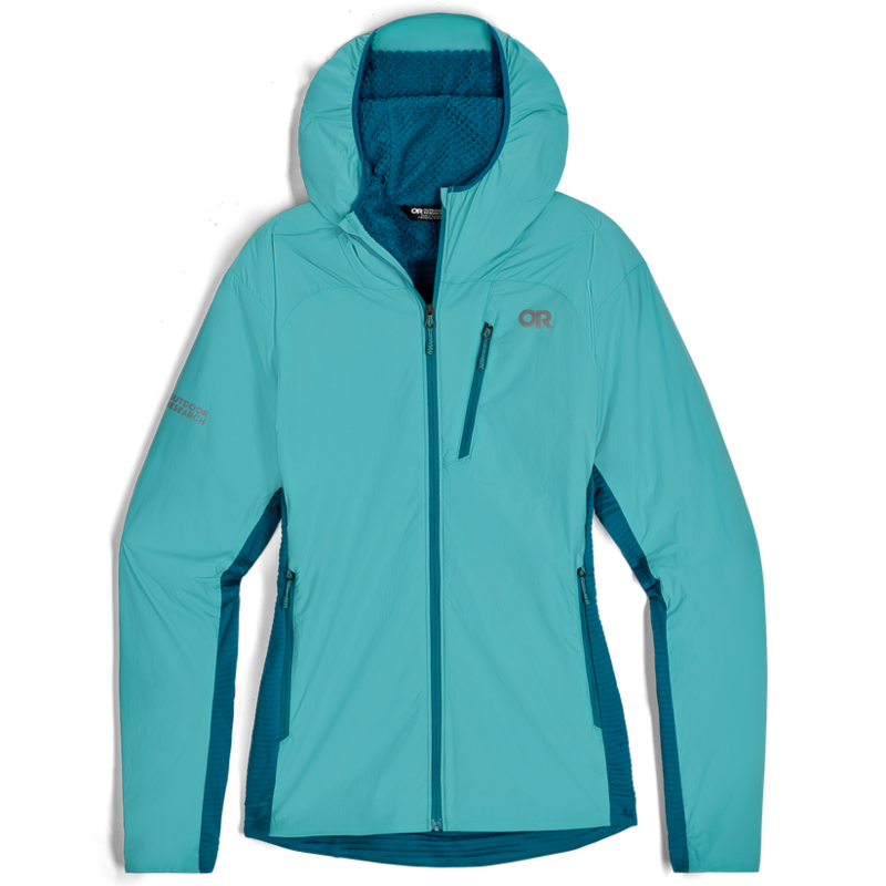 The Outdoor Research Deviator Hoodie transforms how women experience high-output activities in cool weather by intelligently mapping three different fabrics exactly where your body needs them most. This isn't just another insulated hoodie – it's a temperature-regulating system that puts VerticalX™ Octa insulation in your core areas for lightweight warmth, while ActiveTemp™ technology in the back panels and sides actively manages heat buildup during intense efforts. Whether you're crushing a dawn trail run or powering through a backcountry approach, the movement-mirroring stretch fabric moves with every stride and reach, while the strategic material zones keep you perfectly dialed in as your effort levels change. At just 335g, this trim-fit hoodie delivers the sweet spot of breathable insulation that serious outdoor athletes demand when the temperature drops but the intensity stays high.