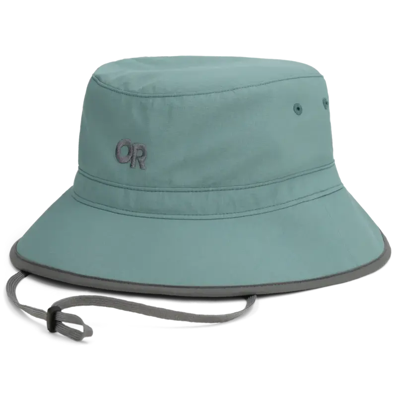 The Sun Bucket Hat’s 2.5" brim and UPF 50+ sun protection shade your head, face, eyes, and ears from the sun's rays, while the dark fabric under the brim reduces glare while out on the water. The floating, foam-stiffened brim keeps the hat on top of the water if dropped, the one-handed drawcord adjustment on the back of the hat gives a custom fit, and the removable chin cord provides extra security on breezy days.