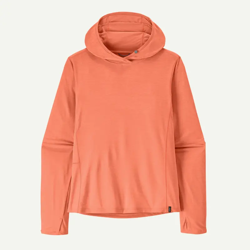Whether you're paddling exposed lakes at dawn or tackling sun-baked mountain trails, the Patagonia Capilene Cool Sun Hoody delivers serious protection without the bulk. This women's sun hoody combines permanent 40+ UPF protection with moisture-wicking performance that keeps you comfortable during those sweaty, all-day adventures. The generous hood buttons securely over your favorite ball cap, while thumb holes and finger loops extend coverage to protect the backs of your hands – because sunburned knuckles are nobody's friend. Built from lightweight recycled polyester with a textured back that lifts fabric off your skin, it dries fast and breathes easy when the temperature climbs and the miles add up.