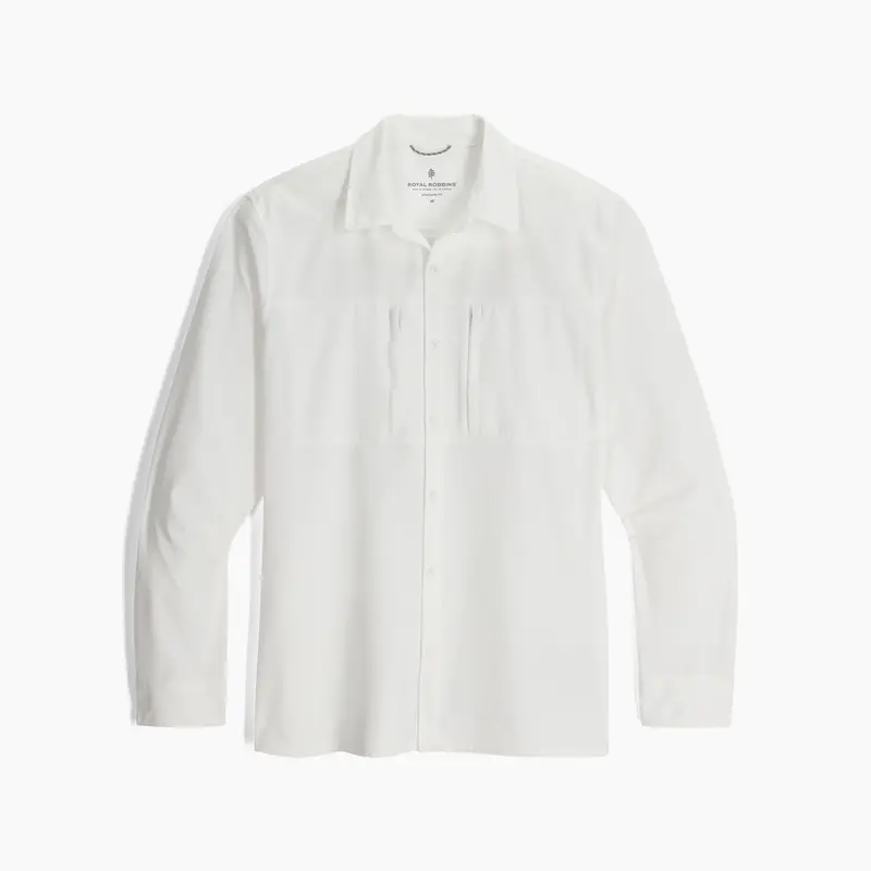 When the trail leads through buggy backcountry and scorching sun, the Royal Robbins Expedition III Long Sleeve Shirt delivers the protection you need without weighing you down. This premium men's hiking shirt features innovative Mosquito Protection Technology that uses an engineered tight-weave fabric to create a chemical-free barrier against biting insects that won't wash out or fade over time. Combined with UPF 40+ sun protection that blocks over 97% of harmful UV rays, this performance outdoor shirt keeps you comfortable during long days on exposed trails. The moisture-wicking, quick-drying polyester construction ensures you stay dry when the effort heats up, while the lightweight 5.8 oz design and stretch fabric move with you on challenging terrain. Built from 100% recycled, Bluesign-approved materials, it's the kind of trail shirt that proves you don't have to choose between performance and environmental responsibility.
