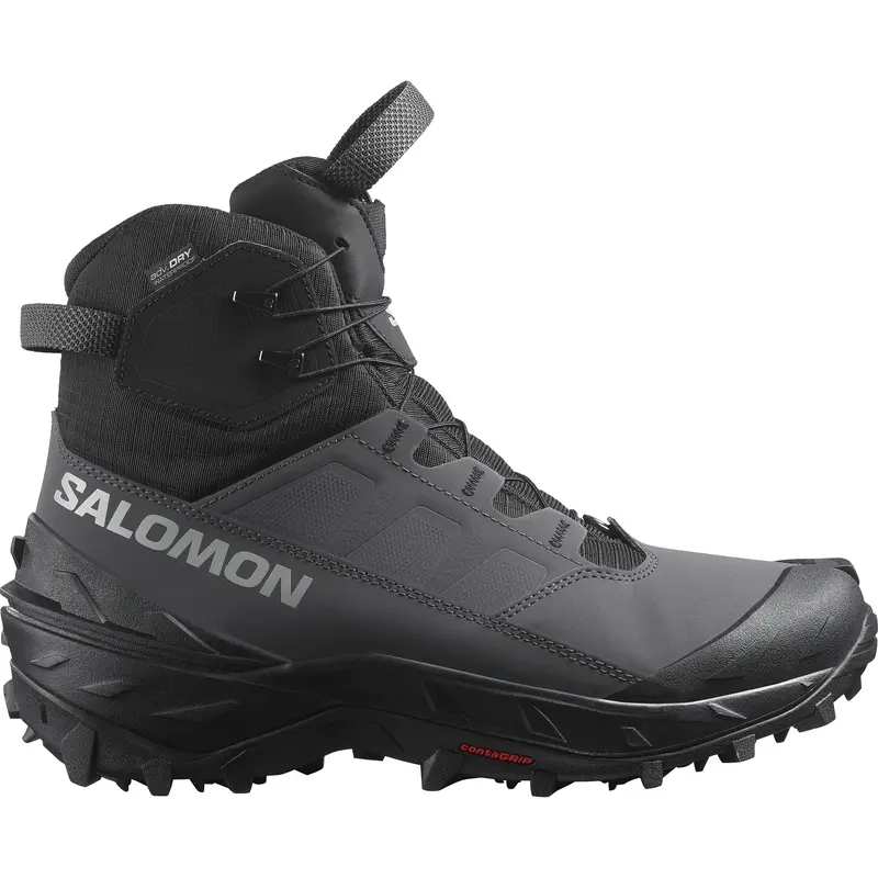When winter calls for serious snow adventures, the Salomon Crosstrak Powder delivers the confidence you need to tackle gnarly conditions from deep powder to packed trails. This men's winter hiking boot combines Salomon's specialized Winter contaGRIP outsole with aggressive lugs that wrap around the midsole sides for superior traction on any snow surface, while the adv.WARM insulation (made from 70% recycled materials) keeps your feet comfortable down to 5°F. The waterproof Adv.DRY membrane blocks out snow and slush completely, and the quickLACE system lets you cinch up fast even with gloves on. Available in wide widths with sensiFIT technology that cradles your foot for a customized fit, these cold weather boots transform winter hiking from an endurance test into the adventure it should be.