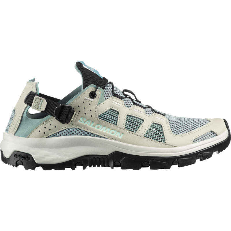 The Salomon Techamphibian 5 water shoes are built for women who refuse to let wet terrain slow them down on their summer adventures. Whether you're navigating slippery rocks on a creek crossing, transitioning from water to trail, or tackling muddy single-day routes, these amphibious shoes deliver the grip and versatility you need. The innovative collapsible heel design transforms them from a secure hiking shoe to an easy slip-on sandal in seconds, while the Water contaGRIP® outsole with specialized siping provides exceptional traction on both wet surfaces and dry trails. Quick-drying breathable materials and anti-debris mesh protection ensure your feet stay comfortable and protected, while the quickLACE™ system lets you achieve the perfect fit with one simple pull. At just 250g, these lightweight water shoes won't weigh you down as you explore everything from riverside paths to rocky shorelines this summer.