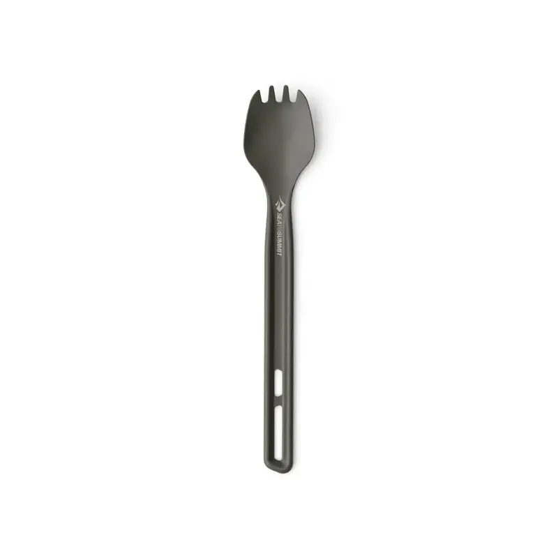 The Long Spork is our perennial best-selling utensil. It has a handle with a unique profile for strength that permits individual utensils to stack together. Food contact surfaces have a semi-polished finish for more enjoyable dining. Made of hard-anodized aircraft-grade aluminum, the Long Spork is built to go the distance.