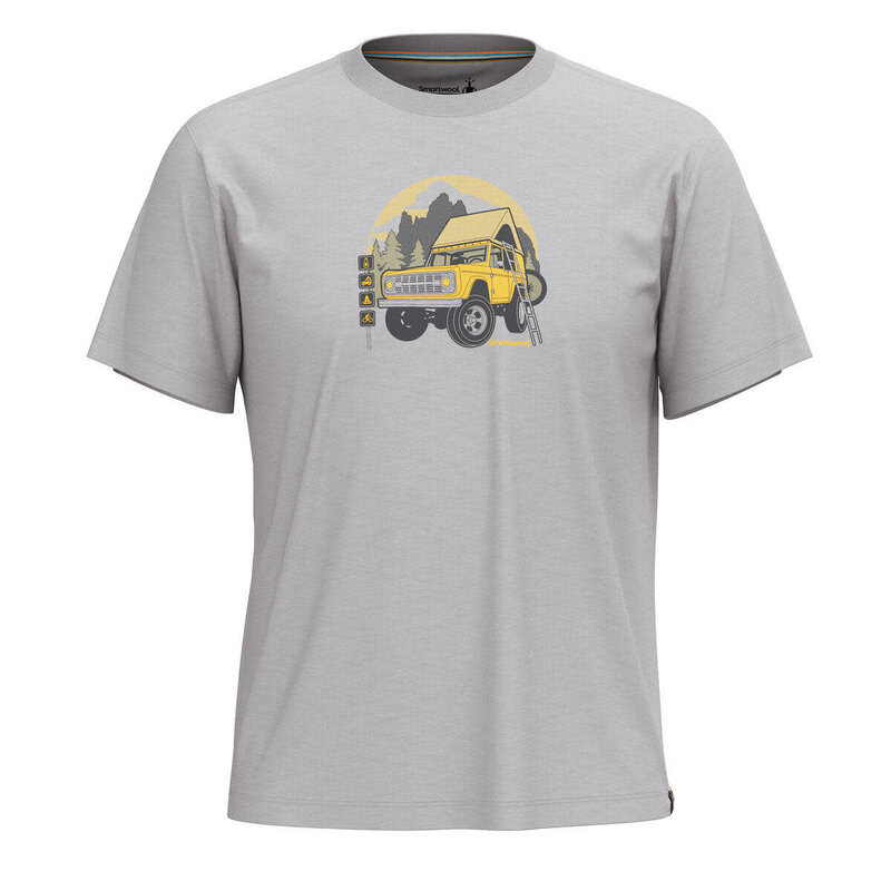 A classic T-shirt, made from natural fibers, and a graphic that evokes weekend getaways in epic places. The natural breathability, sweat-wicking, and odor control of merino wool meets the softness of organic cotton to give you a fantastic everyday shirt for hot weather.