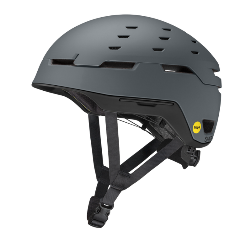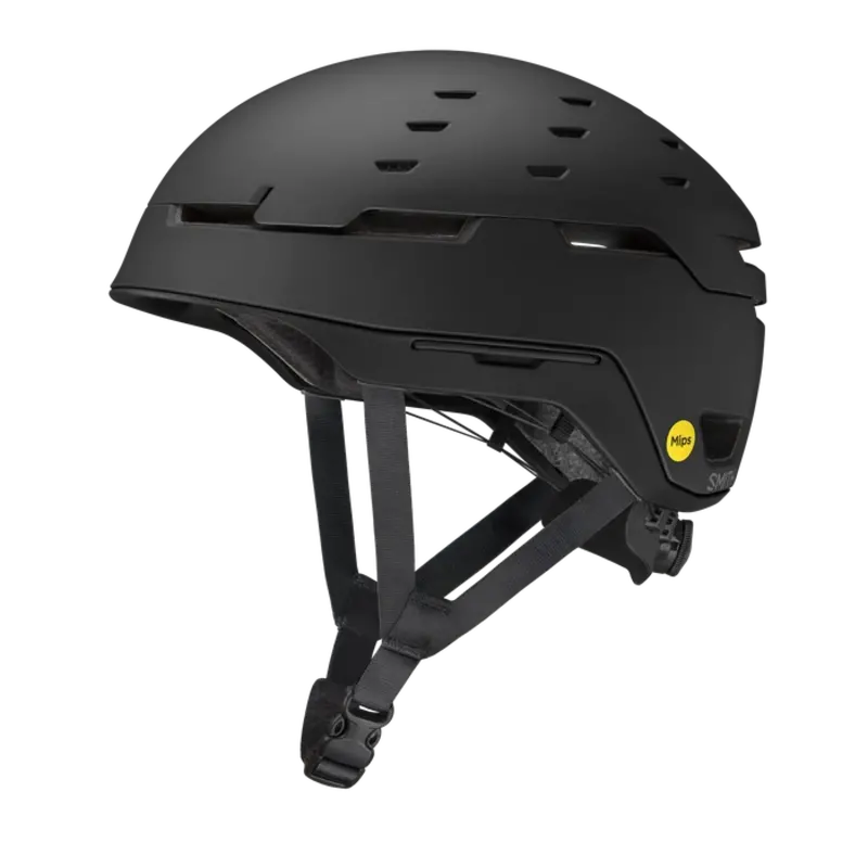 Go light. Go Far. From skin track to boot pack and summit bids, the Summit snow helmet is our lightweight go-to lid for backcountry touring and ski mountaineering. Its triple certified design meets global alpine ski certs plus international mountaineering standards. The design blends a minimalist approach with mountaineering-specific details to keep it ultra-light yet ready for alpine pursuits. Zonal Koroyd® and MIPS® impact protection absorb energy in the event of a fall. Smith Flexible Fit System, featuring BOA® offers a micro-adjustable fit which also collapses into the helmet for easy stuffing into your pack. External bungee loops offer secure attachment to the outside of a pack, too. Integrated headlamp strap routing keeps a light in place, and a beanie and ball cap-compatible design lets you match the weather conditions. Thirty-three fixed vents keep the air moving and your goggles or glasses fog-free. Go ahead and set your sights on the summit.