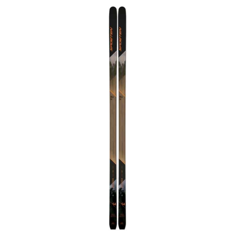 A wood-core sandwich made up of many selective wood wooden plates. With its steel edges, it can handle icy terrain, it can fit into a footprint. Layers of fiberglass take care of the strength. The skis are made with pressed crown. Go where no one has gone before. The weight of one pair of skis is 2,033 g (195 cm).