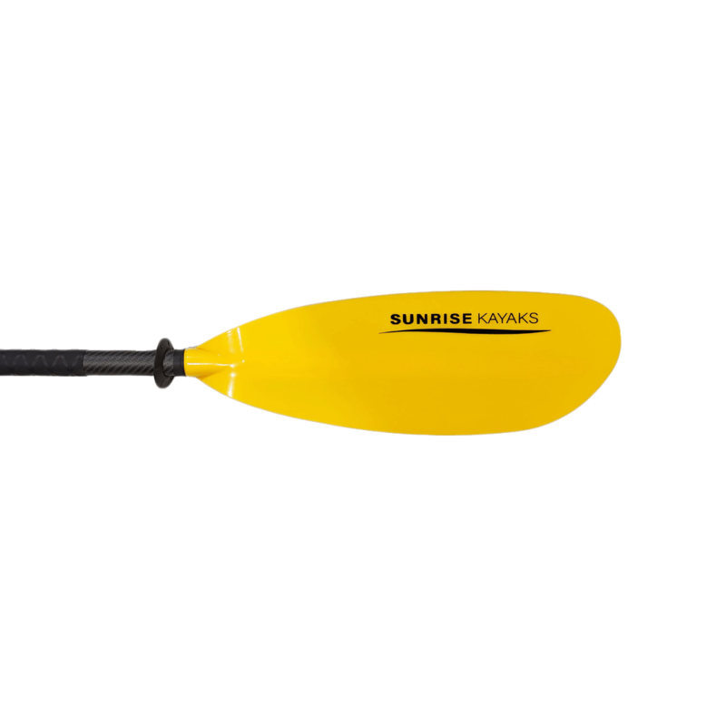 Featuring a durable and efficient nylon polymer blade and a lightweight carbon composite shaft, the Sunrise Kayaks Carbon 2-Piece Adjustable Kayak Paddle seamlessly blends performance with durability. The adjustable ferrule allows you to adjust the paddle’s length - from 220 to 230 cm - and for any desired blade offset to be selected. Diamond rubber grip areas, with an oval index on the right hand, provide ultimate comfort for full days on the water.