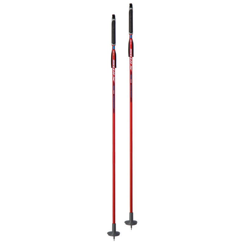 The Swix Cross Jr Ski Pole is purpose-built to help young Nordic skiers develop proper technique across classic and skating disciplines on groomed trails. Featuring an ergonomic polycarbonate handle designed for smaller hands and a semi racing basket that bridges recreational and competitive skiing styles, this pole grows with your child through adjustable lengths from 85-120 cm in 5 cm intervals. The durable aluminum shaft construction strikes the perfect balance between stiffness for effective poling technique and lightweight performance at just 0.4 kg, preventing fatigue while young skiers focus on mastering their stride and timing on both in-track and out-of-track terrain.