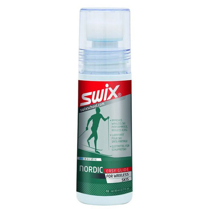 For use with waxless or waxable skis, Swix Easy Glide liquid wax is simple to apply outside the grip zone. Can be used on the grip zone on crown/fishscale skis to reduce ice build-up. For all snow conditions.