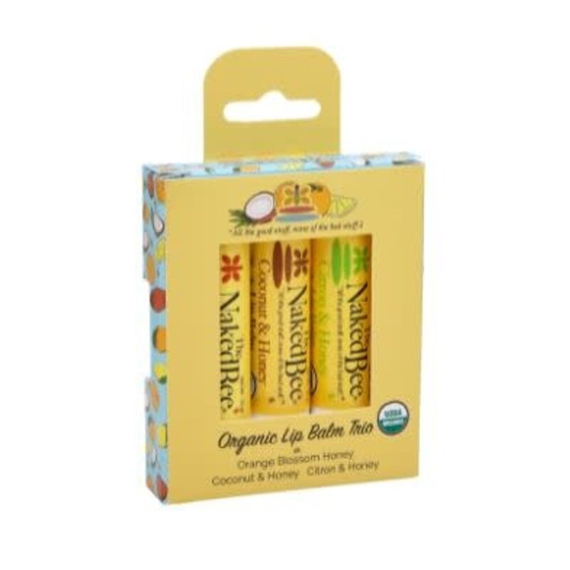 Naked Bee lip balm is made with organic olive oil and beeswax, soybean oil, and honey