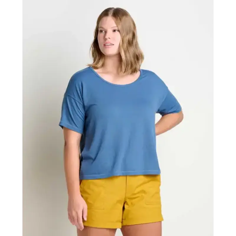 Fit: Boxy fit, scoop neck, drop-shoulder, 23" length