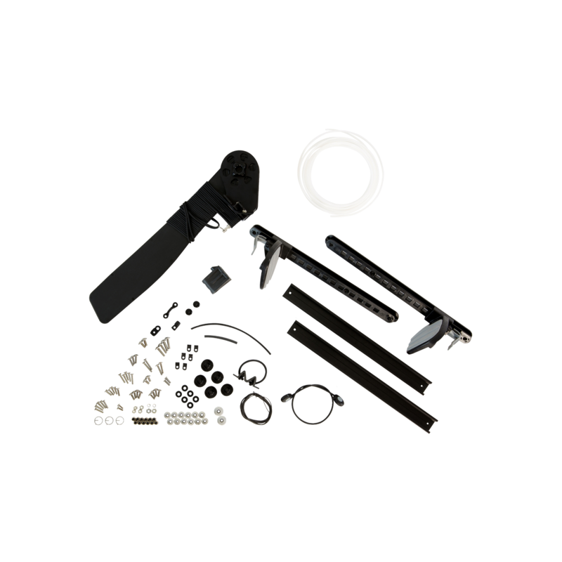 This near-universal rudder kit services many current and older Wilderness Systems solo kayaks. The kit includes footbraces, solo size rudder assembly, cables, tubes, and hardware to fit both rudder-ready and non-rudder ready kayaks.